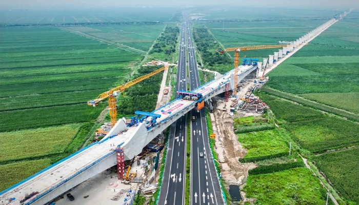 津?yàn)H高鐵山東段最大跨度連續(xù)梁合龍