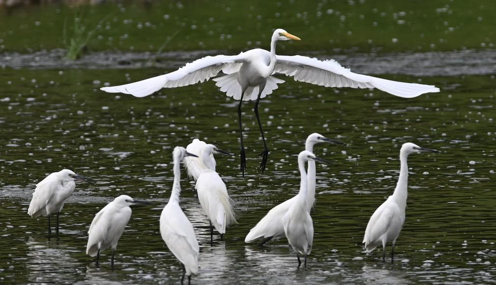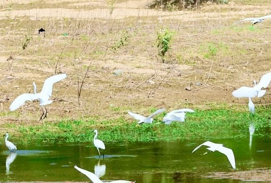濟(jì)南玉符河畔生態(tài)和諧鷺鳥(niǎo)歡