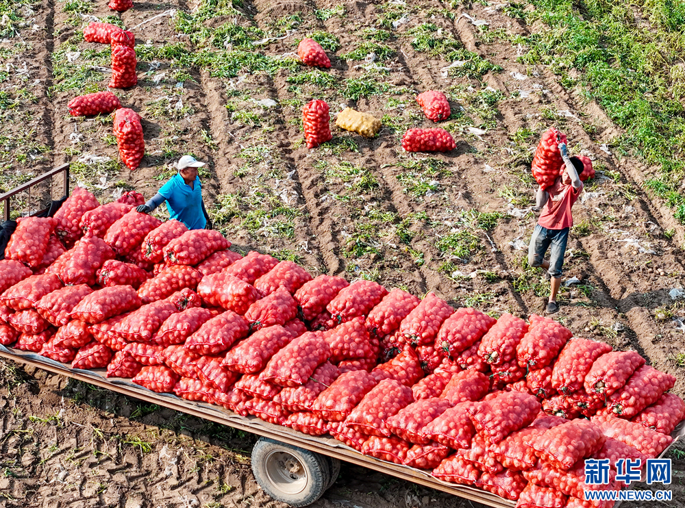 种植户搬运马铃薯。新华网发(张进刚 摄)