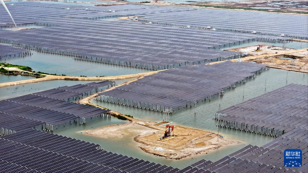 近年来,山东省东营市积极发展清洁能源,探索“油光互补”模式,盘活胜利油田闲置土地,于2025年5月建成总装机容量300兆瓦的东营辰耀垦东光储一体化示范项目,年发电量可达4.8亿度,相当于减少标煤消耗14.6万吨。新华社记者 郭绪雷 摄